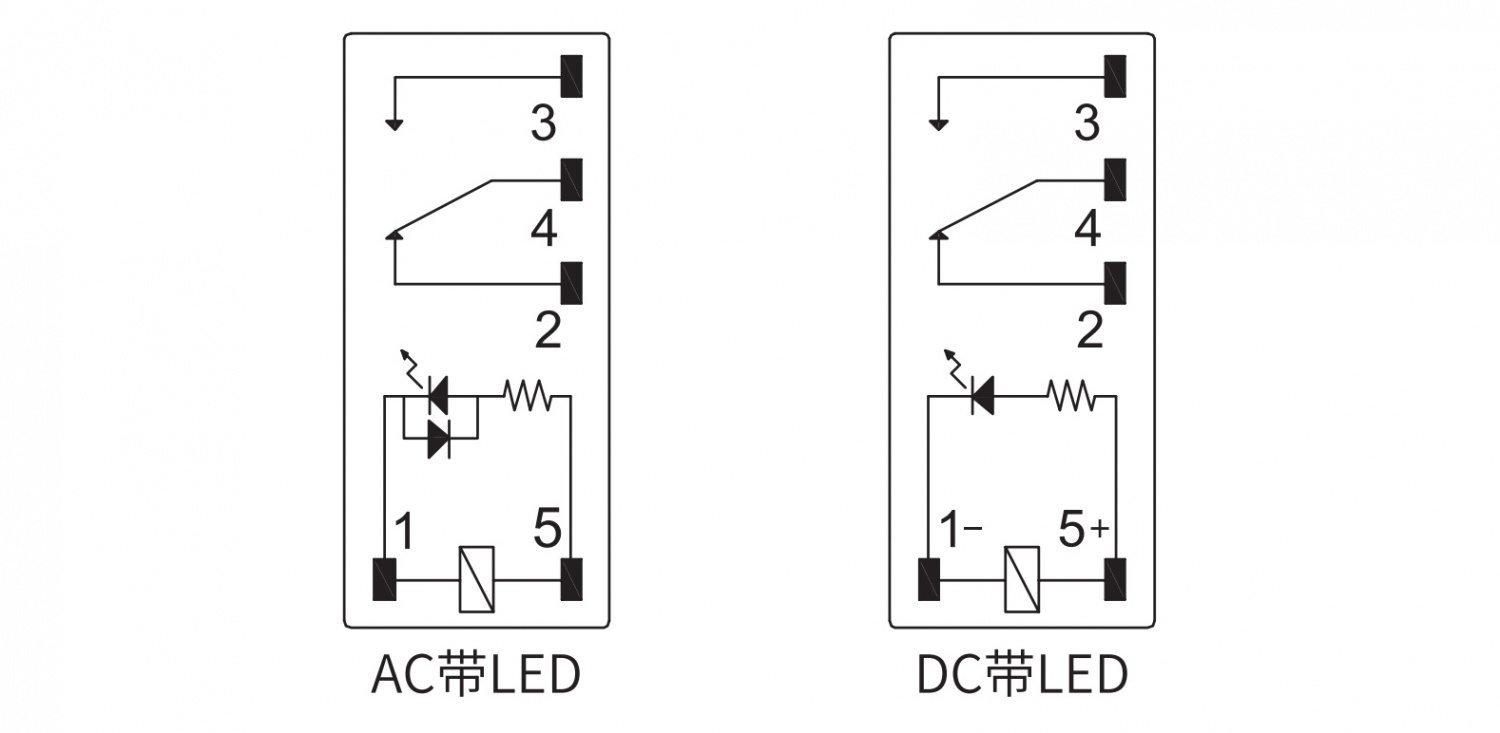 • 直流线圈可选带续流二极管