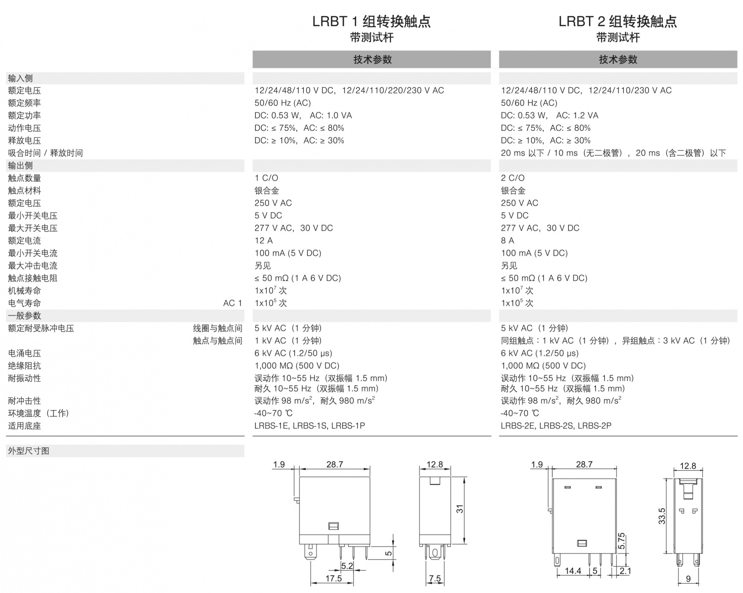 LRBT1组转换触点(带测试杆)