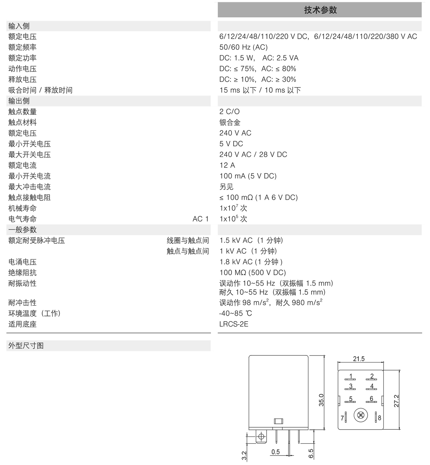 LRC大电流型继电器